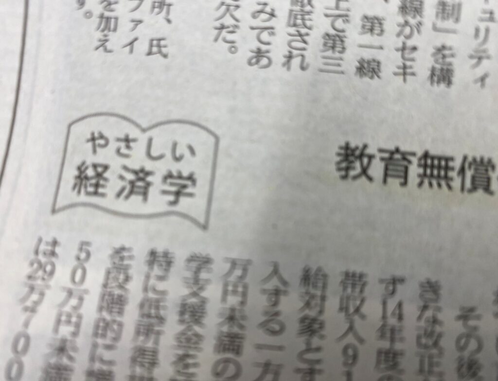 日経新聞「やさしい経済学」で卒業生の連載が始まりました。