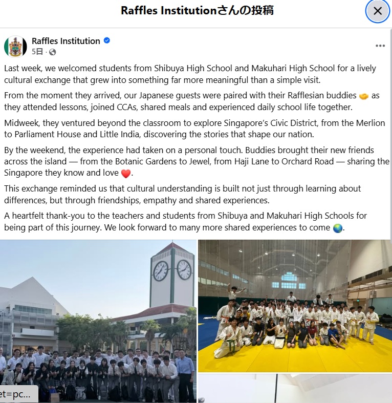 長年、本校と渋谷校との交流が続くシンガポールのRuffles Insti…