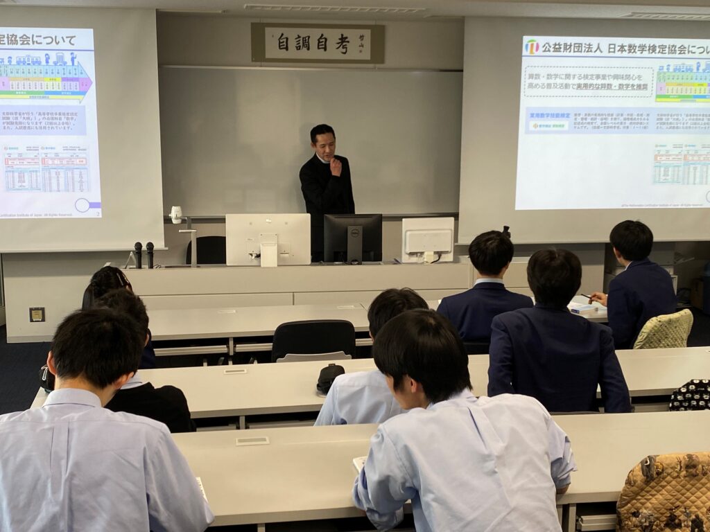 2025年12月17日2025年12月17日 未分類 第2回データサイエンス数学セミナー昨年に続き数学検定協会から講師をお招きして、データサイエンス数学セミナーを開催し、高1、高2の有志10名が参加しました。このセミナーは文部科学省が推進する「DXハイスクール(高等学校DX加速化推進事業)」事業の一環として開催しており、主に高校の授業では教わらない範囲を学ぶます。 ウェブサイトのレコメンデーショ…