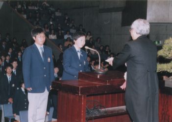 これからの学枚生活では、人生で最も感受性 が豊かなこの時期に、高校生活の中にある無数の チャンスや可能性を積極的に活用して、様々な物 事に興味を持ち続け、自分の進みたい道を見つけ たいと思います。そして自分で選択した道を全力 で悔いを残さぬように突き進んでいく心構えを常に持って、高 校生活を送る決心です。 それにはまず、今までの仲間に加えて、新しい仲間とも切磋 琢磨し合う事で、互いの個性を尊重し合い、より一層大きく成 長していきたいと考えています。一方で学校生活だけでなく、社 会にも目を向け、地域社会と関わりを持ち、自分がどのような 役割を担えるかを深く考えたいと思います。とりわけ21世 紀に向けて国際化が進む中、世界の人々と理解し合い、協力し 合う地球規模の視野を持つことが重要になります。 自調自考の精神と自由な校風を伝統としている幕張高校に入 学するにあたり、本校の基本精神に基づいて自己を厳しく律し 責任ある行動をとり、かつ、自分の夢を見つけるべく充実した 楽しい高校生活を送ることを約束いたします。 | ||