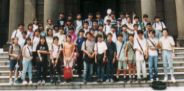 【社会科】 8月9日に夏休みの恒例行事 となった中学校の社会科巡検が 二コースに分かれて行なわれ、 総勢150人に及ぶ中学生が参 加しました。