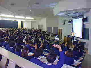 去る11月8日、15日、 高校1年生全員を対象に実施 しました。 「税務教室」は従来も行っ てきましたが、今年度は講師 に大蔵省主税局の企画官であ る橋本元秀先生をお招きする ことができました。大蔵省の いわゆる「キャリア官僚」と いわれる方がこのような形で 一般の高校生に語りかけるの は前例のないことだそうで す。(橋本先生は「キャリア」 は特別な存在ではないと強調 されていました。) 先生は豊富な資料を用い て、税はコミュニティを成り 立たせるために必要であるこ と、社会や時代によって内容 が異なりそれはコミュニティ の合意に基づくことを、やさ しく熱心に説いてくださいま した。 ![]() |