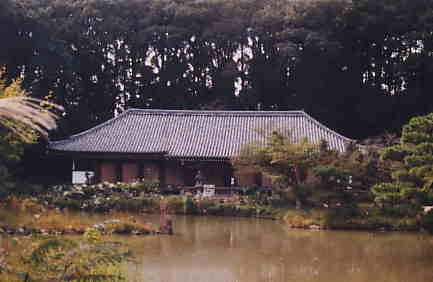 ![]() そんな場所がら、 浄瑠璃寺の境内は人 気がなく涼しかった。 私達の班の研究テー マは文学だったため、 仏像に関する予備知 識はないに等しかっ たが、九体仏には、ただ呆然とし た。元来、参拝するために造られ たお堂ではないらしく、建物い っばいに金色に輝く仏像が並び、 私達を圧倒した。私は畳に座り、 しばし仏像 を見つめて いた。やが て帰る時刻 となったが、 バスの時刻 表は9月1 5日付で変 更され、何 とあと1時間は来な い。が、結局開き直っ た私達は、行きの手違 いのせいで短くなった 分を取り戻すべく、そ の1時間をのんびり境 内で過ごすことにした。 私は外で何もせずにい ることは30分もないといって いい。しかし浄瑠璃寺では1時 間、特に何もせず、ぶらぶらと過 ごした。この後の2日間は法隆 寺など有名な寺を巡ったが、私 の記憶の中では、この浄瑠璃寺 が最も奈良のイメージと重なっ ている。行程表の狂いによって 生じた1時間。この時間に私は、 奈良の古から止まったままの時 間を感じた。