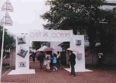 9月14日・15日、第18回「槐祭」文化の部が開催された。今年のテーマは「@しぶまく.come」というIT時代を生きる生徒達が、 千客万来の思いを込めて考え出したものである。 15日の一般公開では、雨模様であったにもかかわらず、開校以来最高の7000名を越える多くの方々が来校された。入口付近では、 高校2年F組が作成した安定感がある斬新な歓迎門を背景に、思わずカメラに収めるお客様も多く見かけた。