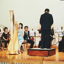 去る五月十七日の月曜日、第二十回メモリアルコンサートが開かれました。 数々の名演を生み出してきたこのステージも早二十周年。これまで 着実に多くの人達に本物の管弦楽のすばらしさを伝えてこられた事と尾もいまs。 今年は高校三年の谷山さん、高校二年の中澤さんが演奏し、オーケストラには田中千香士先生指揮、 レボリューションアンサンブルを迎え、聴衆と奏者の心が一つになり、音楽の核心に迫る 熱演が展開されました。 高校三年 谷山 頭の中はまっ白だった。何の音から弾き始めるかさえ考えられなかった。 ただ自分を信じて弾くしかない・・・そう決意して舞台に上がった。 コンサートでの演奏が決まった時は本当に嬉しかった。しかし、初めてのソリストというプレッシャーが何度も私を襲った。 それでも挫折しなかったのは、多くの人々の暖かなお念があったからだと思う。 そして何よりも、ハープを弾く「楽しさ」が私を大いに支え、ここまで成長させてくれたに違いない。 演奏が終わった。私は、この舞台を最後までやり遂げたという達成感で胸がいっぱいだった。 この感動は、いつまでも忘れないことだろう。そしてこのような素晴らしい機会を与えて下さった学校に心から感謝したい。