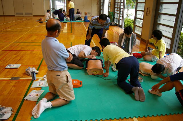 去る7月4日、本校に千葉市防災普及公社の方をお招きしてAED講習会を開きました。 AEDとは心疾患により突然心臓が止まった傷病者の命を救うために、心臓への除細動(電気ショック)を行う機械であり、 わが国では最近になって医療資格を持たない一般の人々もこのAEDを使用することが認められました。 講習会には本校の教員が多数参加し、指導員の方の熱心な指導の下、AEDの使用法について研修を受けておりました。