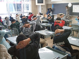れた生徒諸君と、講堂で受験生を