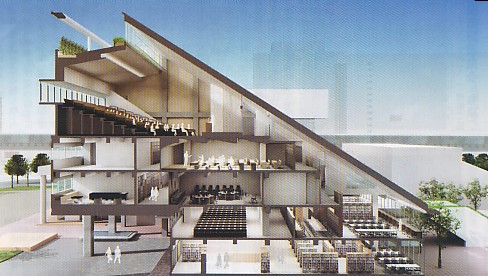 | 新棟の建設により、既存校舎における普通教室の数も増え、同時展開出来る授業の幅も広がり、学校全体で更なる教育環境の充実が図れます。また新棟の3階からは、高校棟並びに中学棟へ渡り廊下で接続しますので、学校全体のバリアフリー化も完成します。太陽光パネルも設置し緑化を積極的に取り入れることで環境にも配慮した建物となっており、震災(津波)への対応も念頭に入れ、2階以上に分電盤や放送ブース、サーバー室や倉庫を配置します。 工事はT期・U期に分かれ、T期工事では、カフェテリアの増床と部室棟の建設を行い、図 書館機能や中学理科室横能の代替を確保。U期工事として、来年度から図書館棟の建て替えを 本格的に行うこととなります。最終的には、図書館新棟の建設に加え、カフェテリアの増設と 部室棟が出来上がりますが、T期工事とU期工事を合わせ、約1年半に及ぶ工事期間中、部室の仮移動をはじめ、何かとご不便をお掛けすることとなりますが、安全には万全を期し、授業並びに学校活動に支障の無いよう、十分注意して工事を進めていく予定ですので、ご理解ご協力の程、何卒宜しくお願い申し上げます。