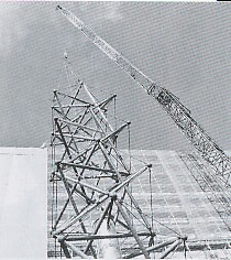 去る1月23日、本校開校2年目からシンボルタワーとして、30年に亘り学校の発展を見守ってきた「テンセグリティタワー」がその役割を終えました。平面的な建物しかなかった開校時、立体的に最も高い構造物として、つくば万博の際に作られたタワーを万博閉幕に伴い譲り受けたもので、30年に及ぶ風雪や震災を乗り越えた渋幕のシンボルの一つでした。引き続き使用出来ないか検討してきましたが、補強等部品更新が出来ないことから、本当に残念ではありますが、安全性の観点から新図書館棟の建設に際し撤去することとなりました。タワー跡には、テンセグリティタワーの歴史を伝える記念パネルを配置した、新しい噴水が設置される予定です。