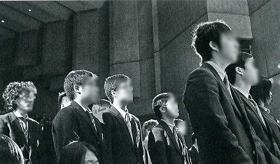 式は、学年教員の情(こころ)溢れる、厳かな門出となった。 少し前、テンセグリモニュメントも勇退した。 鴉を置けば芭蕉の句に、黄昏のシルエットではモンドリアンの画にもなる巨大オブジェは、コルビジェの影響濃い校舎のデザインに良くマッチしていた。 校舎棟と体育館棟への追分(おいわけ)に立ち、入学式の喜び、遅刻生徒の不安、部活後の筋肉の火照り等、二十八期生の哀感を見守る道祖神であった。 道祖と言えば、本校書道教育の祖・小林先生の手による式典の大看板も最後となる。 先生が廊下で生徒と談笑する場面を思い出し、式典の空気は、本校の三十年の歳月が練り上げたのだという想いを強めた。 校長式辞、来賓祝辞、送辞、答辞にも三十光年の奥があった。 式辞が一昨年の大地震からの天変地異、社会激動の時代に 「いかにして生きるか」 という点に触れると、卒業生は仰角20度の視線で応えた。 送辞・答辞では、感謝と継続という言葉が反映した。 さらに、卒業記念樹が、大地震で枯れた校樹の補植という形で遺された。 式を終えて講堂から出てくる 卒業生の瞳が潤んでいる。
