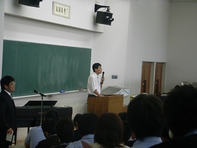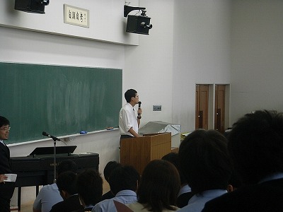 修学旅行に際して、校長先生や中3、高2それぞれの研修委員長からお話がありました