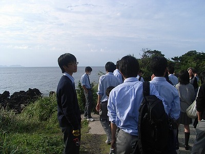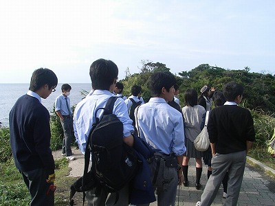 この日は、長崎鼻と呼ばれる景勝地を見学しました。残念ながら2団のほうは、台風の影響で