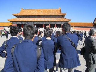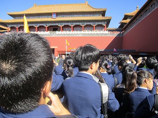 今日は故宮、天安門などを見学後、学校交流を行いました。
