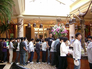 我々が宿泊した北京龍城麗宮国際酒店です。中国で「酒店」とはお酒を飲むところではなく、ホテルのことを指すのだそうです。かなり立派なホテルでした。 |