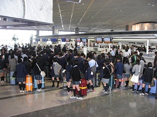 出発前の成田空港の様子です。皆、時間通りに荷物を預け、定刻に出発することができました。 |
