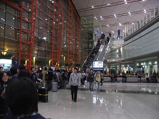 北京首都空港の様子です。この第3ターミナルはわずか半年ほど前に完成したものだそうです。予想以上に綺麗で、広かったので、生徒は皆驚いていました。 |