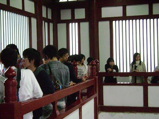 昼食の金殿です。1階が土産屋で、食後に立ち寄った生徒は楽しそうに眺めていました。 |