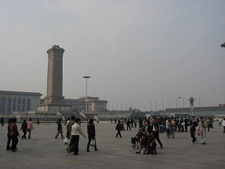 | 天安門広場です。かなりの広さです。国慶節直後ということもあり、普段よりも華やかに装飾されていました。ここではクラスごとに集合写真を撮りました。 | ![]() |