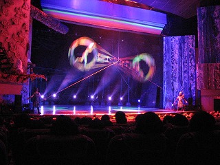 | 雑技団の様子です。どの演技も人間離れしており、生徒は驚きの歓声をあげていました。 | ![]() |