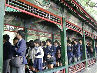 | 本日の宿泊場所、前門建国飯店の様子です。1団も同じ場所に泊まっているので、先に帰っていた1団の生徒が拍手で2団の生徒を出迎えてくれました。 | ![]() |