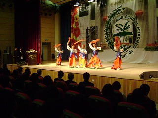 学校交流の様子です。セレモニーは厳粛でしたが、生徒間の交流はとてもスムーズに進めることができました。 |