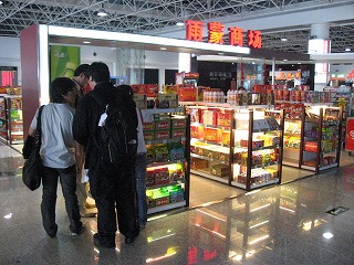 | 西安空港の様子です。手荷物検査後、ゲート内でのお土産を買う時間では、多くの生徒がパンダの人形を買っていました。 | ![]() |