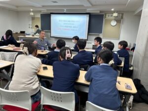 2月9日、今年も住友商事キャリア教育支援事業であるMirai Schoolを実施し、中3から受験直前の高3まで25名が参加しました。講師は住友商事グローバルリサーチ(株)の浅野さん、そして本校30期生で住友商事の岡田さんでした。