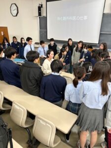 2月14日(土)、毎年の恒例となっている「メディカルガイダンス」を実施いたしました。今年度は、医学部生の込山さん(36期生)、研修医の川原さん(34期生)、医師の柿元さん(30期生)の3名をお招きし、講師を務めていただきました。医師・医学を志すに至った経緯、大学での研究、実務を通して得たことやその苦労など、様々な角度から「医」について語ってくださいました。また、実際の手術の映像や、手術で用いる器具もご紹介いただきました。参加生徒40名にとっては、「医」を少し身近に感じることができたのではないでしょうか。