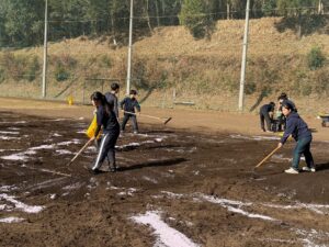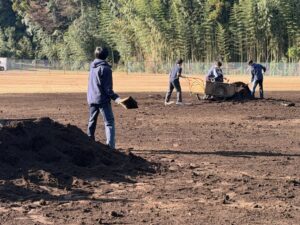 今シーズンお世話になったグランドに感謝の気持ちを込めて、部員が新しい黒土と土壌改良剤を入れ丁寧にグランド整備を行いました。
