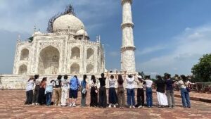 インドスタディツアー2025 2025年10月10日2025年10月10日 ホームページへの掲載が遅くなってしまいましたが、8月10日~17日、渋谷高と幕張高の高1高2の生徒30名がインドスタディツアーに参加しました。 このプログラムは昨年から始まり今年は2回目となります。現地受入れ校であるVasant Valley Schoolの保護者宅でホームステイを受け入れていただく形式の研修です。タージマハールやイスラム教遺跡の見学、スラム街への訪問、学校での歓迎行事(リッパンアートや絞り染め体験)などを通じ、インドの歴史、文化、生活に深く触れることができました。